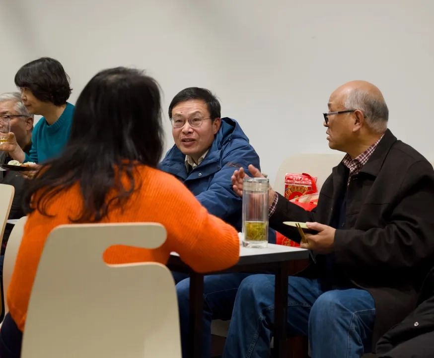 致辞过后,丰富的美食盛宴就开始了。这次联欢活动学院准备了南京烤鸭、羊肉串、羊肉汤、双层大蛋糕、饺子,还有水果、茶饮等各种美食和饮品。老师们品尝美食,举杯同庆过去一年的成绩,展望畅谈未来的发展。