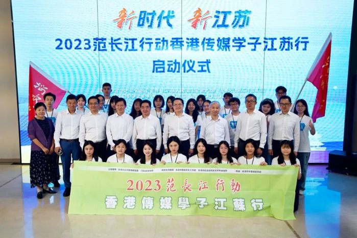 8月9日,“新时代新江苏——2023范长江行动香港传媒学子江苏行”活动启动仪式在南京世界文学客厅举行。本次活动由中共江苏省委宣传部、江苏省人民政府新闻办公室、 香港大公文汇传媒集团主办,得到香港中联办青年工作部、香港特区政府民政及青年事务局的特别支持。江苏省委常委、省委宣传部部长张爱军出席活动,与香港大公文汇传媒集团董事长李大宏分别为苏港学生代表授旗。