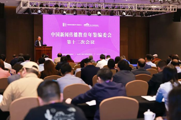 国际会议中心紫金厅举行,由中国新闻史学会新闻传播教育史专业委员会副理事长何志武主持。出席本次会议的常务理事细化了年鉴编委会第十三次会议相关安排与中国新闻传播教育年鉴书系(十本)编辑出版说明,并针对学会和编委会换届等议题展开了讨论。