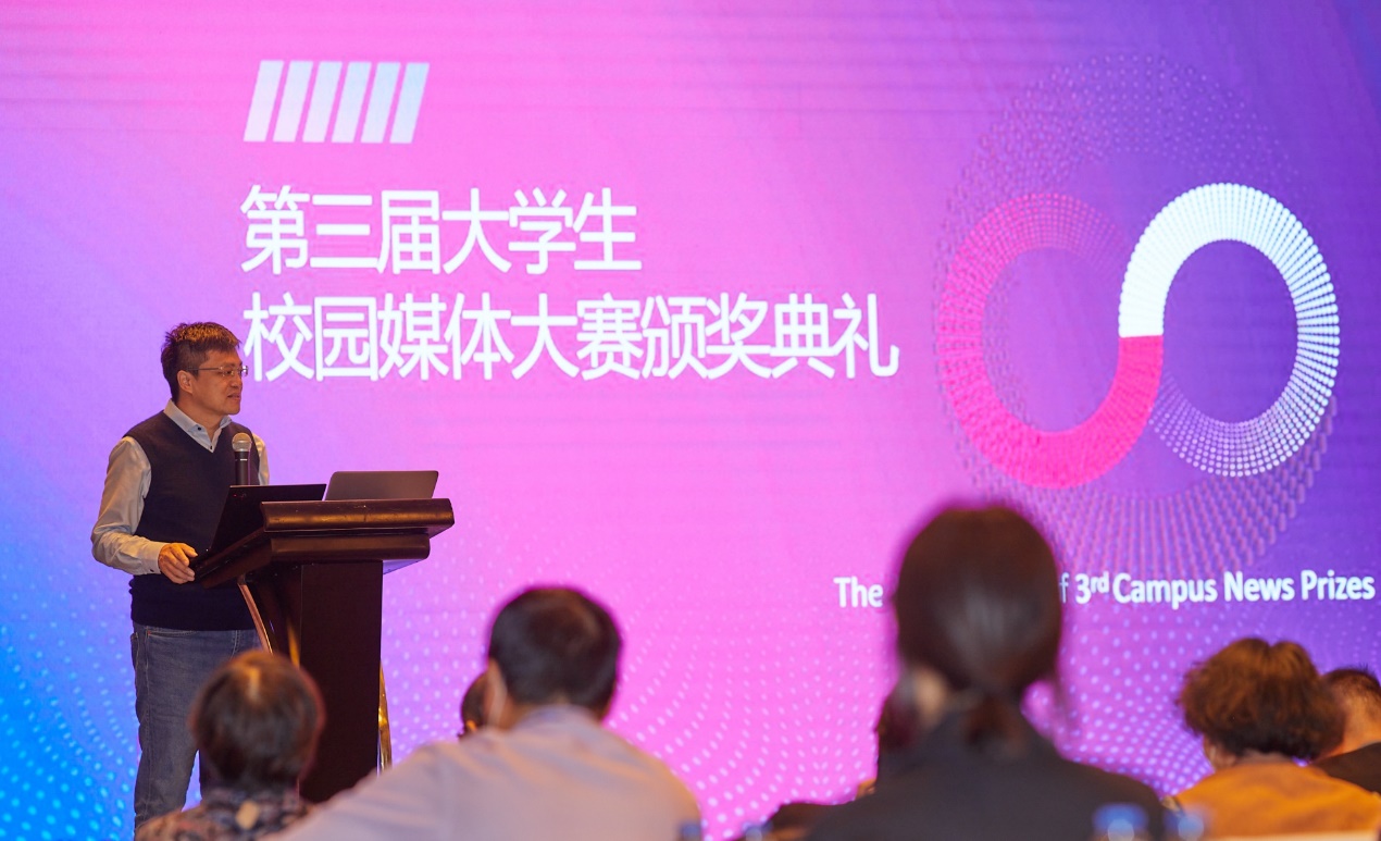 徐慨教授在致辞中表示,校媒不仅是学生锻炼的平台,也是发挥社会影响力的载体,见证了年轻学子从年轻走向成熟。通过这次大赛可以看到,校园媒体实践日益丰富,作品类别更加丰富均衡。