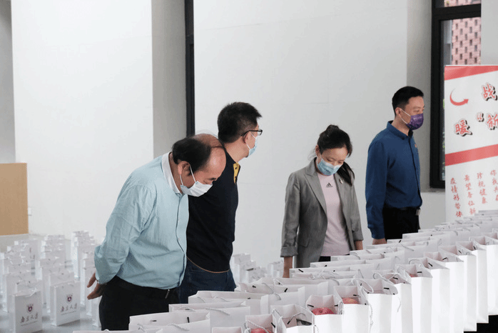 学院党委书记刘源、执行院长张红军及党政班子成员,也在现场为同学们发放慰问物资。书记表示,我们大家在抗击疫情的斗争中是共同体,我们心系彼此,团结一心,让生活顺利展开。这些礼物包含着学院浓浓的心意,希望这些零食能够让同学们回忆童年的味道,增添生活乐趣。