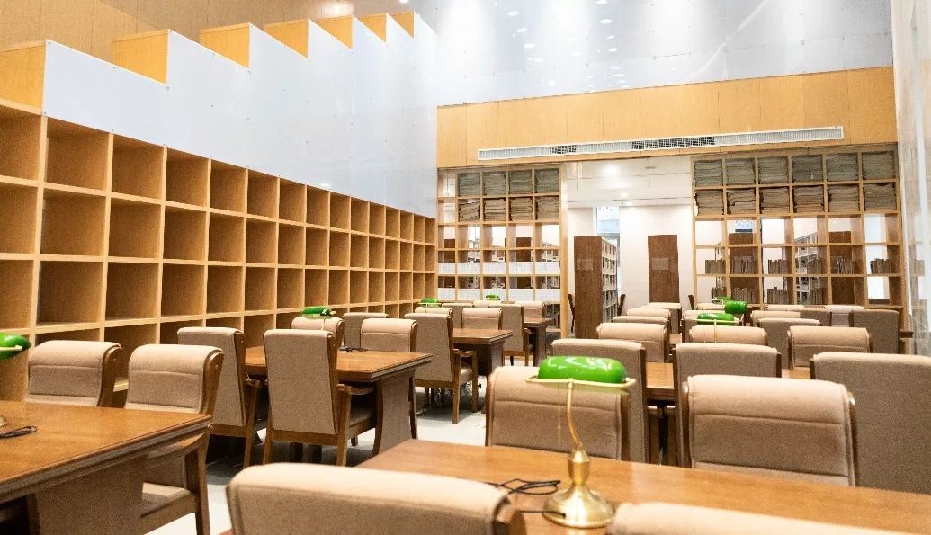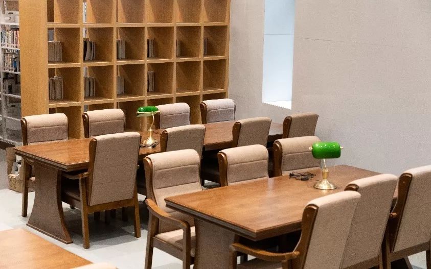 为了让同学们能有更好的使用体验和阅读学习环境,学院还购置了许多宽敞的阅览桌,并放置富有民国风情的“小绿灯”,同学们在灯下安静看书学习,也是一种享受。在停笔休憩之时,抬头便可以看到楼顶有三排太阳能灯,像点点星空,节能又美丽大方。