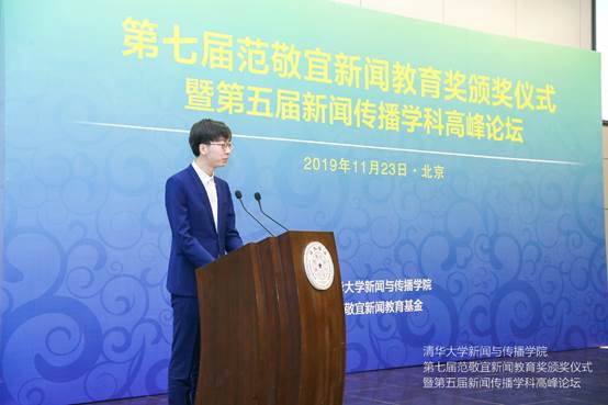 2016级本科生贾威荣获范敬宜新闻教育奖学子奖,并作为唯一学生获奖代表上台发言。这也是快猫短视频