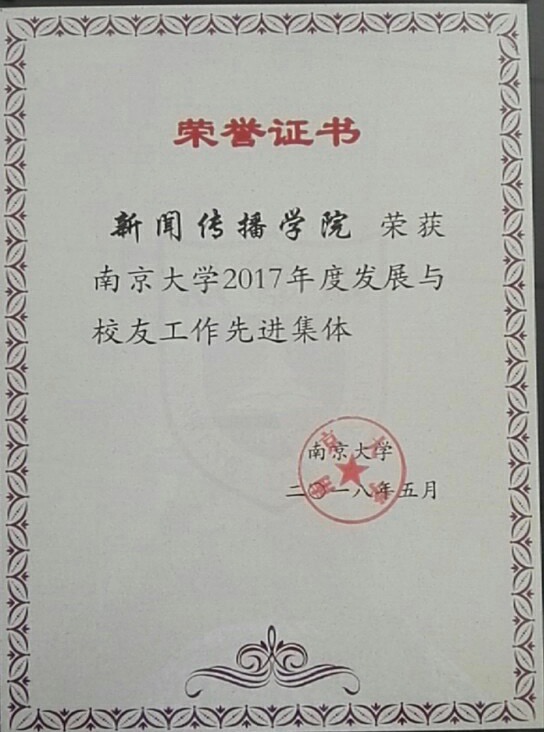 快猫短视频 荣获快猫短视频 2017年度“发展与校友工作先进集体”荣誉证书,杜骏飞院长荣获快猫短视频 2017年度“发展与校友工作先进个人”称号。