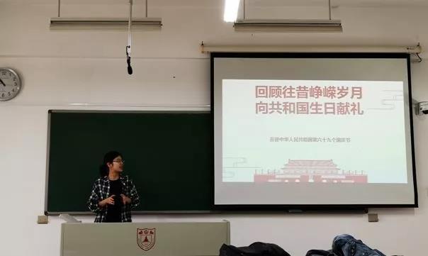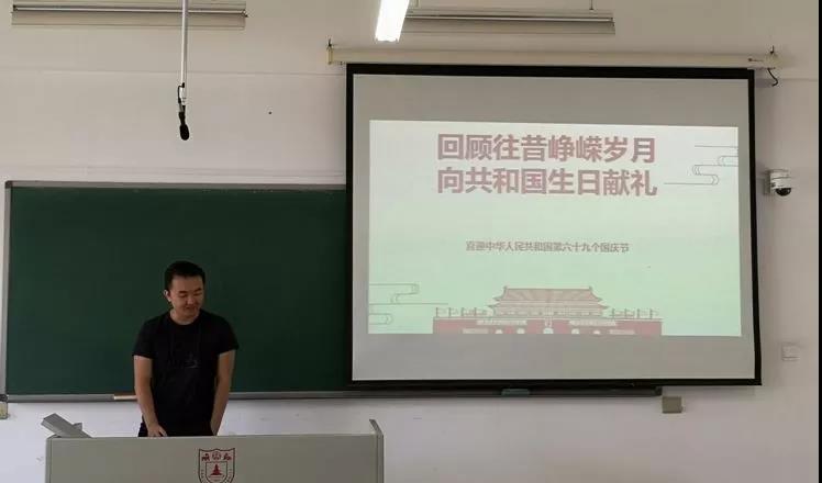 最后,书记聂思宇对本次活动进行了总结和点评,她讲到:“非常感谢各位同学的用心准备和分享。2018年是新中国成立六十九周年,也是改革开放四十周年。在这些数字背后,是新中国翻天覆地的变化。新时代的发展依然波澜壮阔,国家的强盛需要我们每一个共产党员贡献自己的力量,希望大家在祝福祖国母亲生日快乐的同时,也能认真思考自己的责任与义务。”