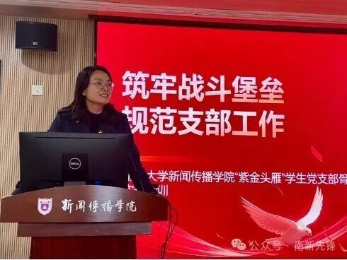 季晓敏表示,各支部骨干要深入理解并严格规范落实“三会一课”制度,确保工作记录完整、准确,经得起检验;支委会应坚持集体决策,提升工作的规范性与示范性。其次,她指出学生党员骨干要突出先锋性,着力推动党建工作与学业科研深度融合,并进一步解释了将支部建在专业方向上的考量,旨在更好地服务同学们的成长。此外,结合学校“奋进行动”的部署,她号召大家践行“新传式奋进”,激发支部活力,团结凝聚人心。最后,她特别强调骨干们要强化服务意识,改进工作作风,发扬党的优良传统,切实发挥模范带头作用。