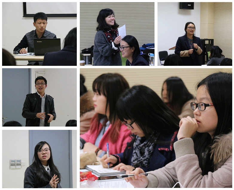 随后,周围老师和徐志萍老师相继发言。周围老师首先对团委的近期工作特别是本次联席会的准备提出表扬,鼓励所有团支书特别是2014级的新同学积极融入新传这个有爱的大家庭,发掘潜力开展工作,为建设更好的新传团委一起努力;徐老师也肯定了新传团委的工作成果,并对接下来的团生活动寄予期望。