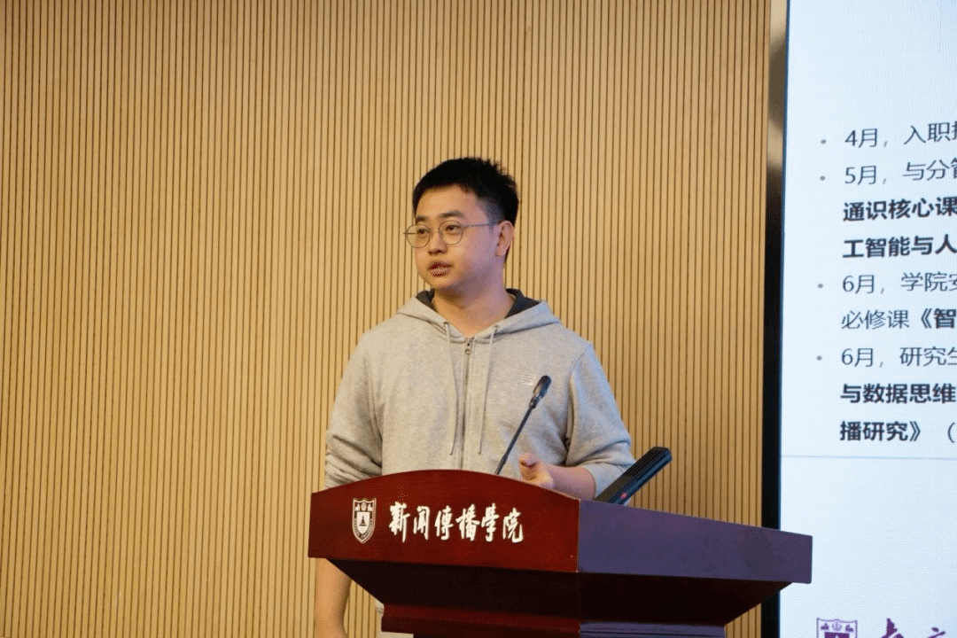 第三组钱宇星、马文、孙永健着眼新教师成长规划,从跨学科背景出发,分享了智能传播、国际传播等特色课程建设思路,展现了以学生需求为导向的教学设计理念。郑昱和季晓敏作出点评,充分肯定青年教师的创新思维,鼓励他们持续学习与探索。