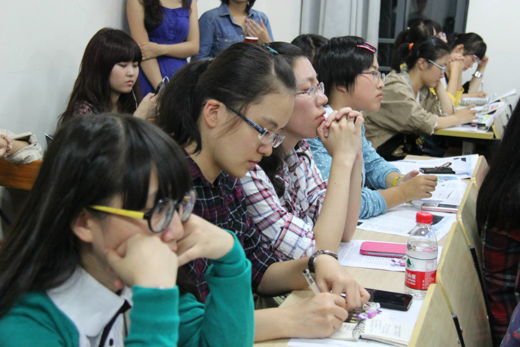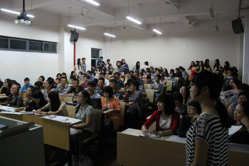 (达人学姐介绍大学生活传授学习技巧!~学妹们听得很认真哟)
