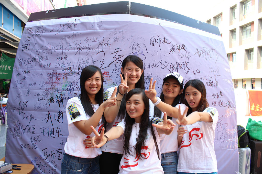 (成果丰硕的签名板前美腻学姐们的合影)