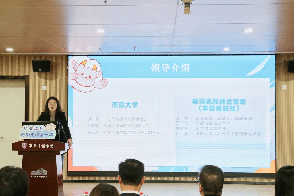 季晓敏代表学院致欢迎辞。她表示,羊城晚报社在新闻报道和文化传播等多个领域均取得了卓越成就,是具有广泛影响力的主流媒体。她还对学院的办学发展、学科特色、人才培养和2025届毕业生情况进行了简要介绍。