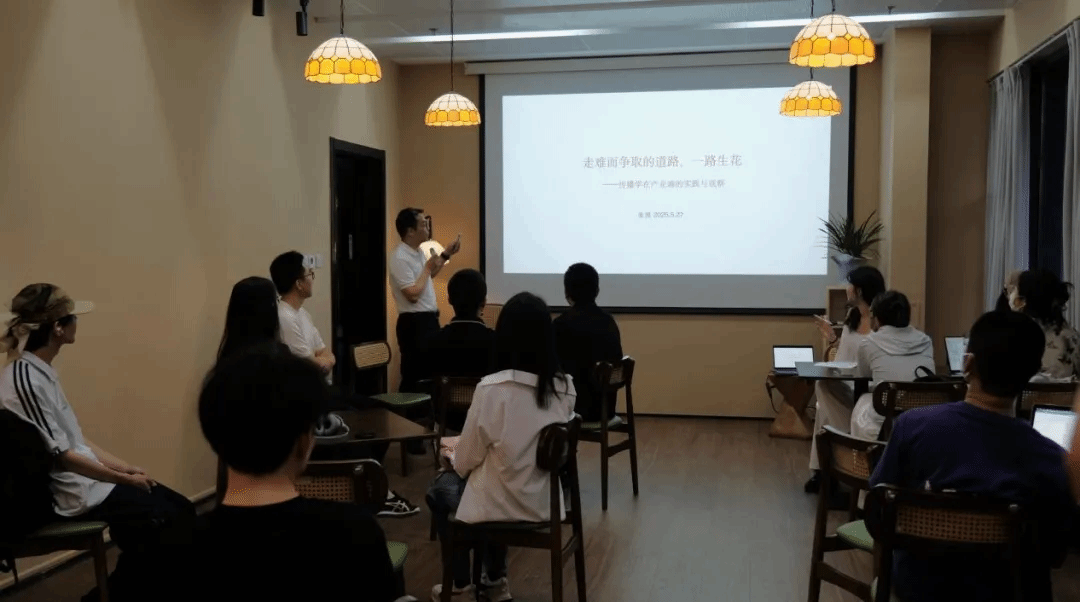 学生生涯规划导师”。他讲述了自己职业生涯的多次转型,从记者、编辑、品牌策划到商业化产业园对客招商及社群运营,也坦诚分享了自己创业失败的经历。他建议同学们珍惜媒体工作带来的对话机会,从媒体工作中培养发现问题、分析原因、说清趋势、链接专家的能力,要保持成长型思维。