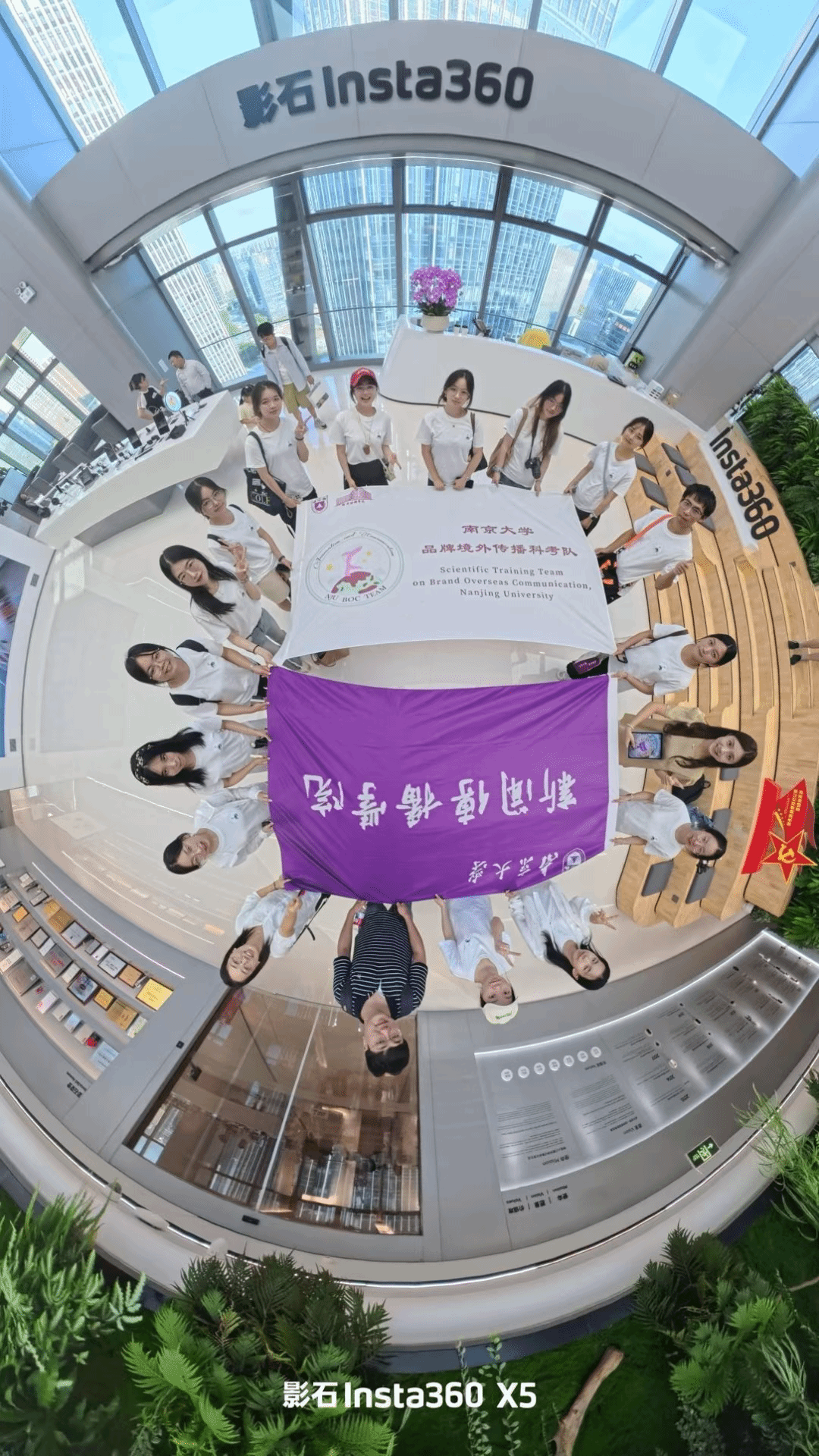 抵达深圳,科考队于822日走访了影石360公司。在企业代表孙琳惠的引导下,师生们近距离体验了8K全景运动相机等明星产品,并用全景相机拍摄创意合影。企业代表热情地向同学们分享了影石的发展历程与全球化布局,强调通过精准定位、本地化运营及KOL合作打开欧美、日韩等高端市场。影石的出海经验成为科考队研究中国科技品牌国际竞争力的又一鲜活案例。