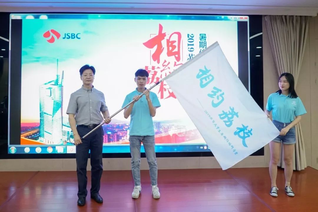 郑暐儒、曹玥分别作为台湾与大陆的学生代表进行发言,他们一致对江苏省台办、江苏广电总台提供的实习机会表达感谢,并且表达了希望在研习营中亲密接触江苏人文、增进专业技能的愿望。随后,江苏省台办副主任李卫华向学生代表授营旗。
