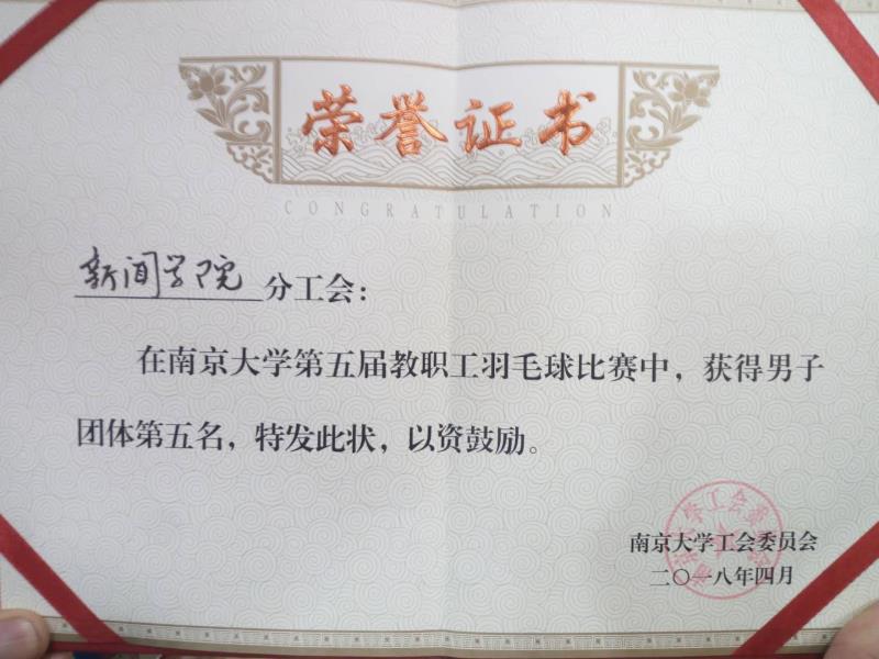 快猫短视频 教师男子羽毛球队,获南大羽毛球团体赛第五名!