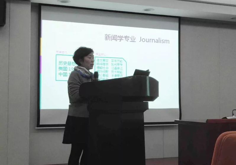 随后,广播电影电视系系主任庄永志老师以《视频:一种最基本的表达》为题展开对本专业的介绍。他通过呈现三项专业机构的调查结果和媒体业界人士的观点启发大家视频表达的重要性。此外,他还展示了新媒体纪年的时间轴以及大公司旗下的品牌产品,表达了现代社会“越来越视频化”的趋势。分享最后,庄老师播放了一个由白岩松、柴静等前辈们录制的寄语视频,向大家发出进入新闻领域的召唤。