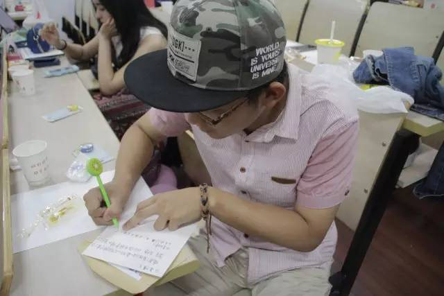 什么也阻挡不了我写贺卡的心!没座位了,那就站着写!