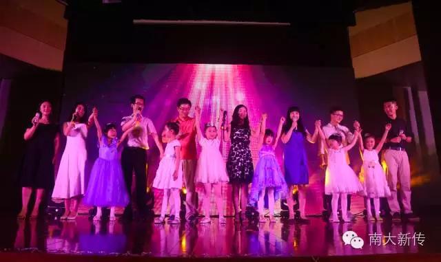 沙画表演结束,温暖还在继续。新传一众男神女神老师带领研究生们为大家演唱《相亲相爱一家人》,朴实而熟悉的旋律宛如电影胶片,将往事一幕幕拉回了眼前。台上老师们青春依旧,光彩动人,与学生亲密互动,更有身着白色小纱裙的女孩在台前伴舞,萌点泪点化为阵阵掌声和欢呼。