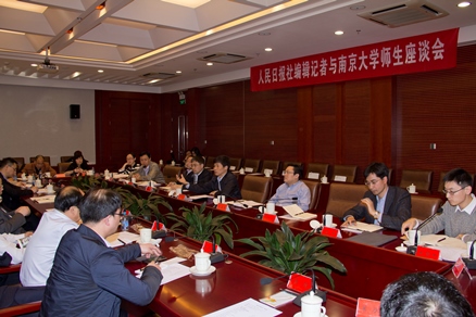 师生代表与人民日报社编辑记者举行了座谈会,对新媒体与传统媒体的竞争融合、突发新闻事件处理、人民日报社用人选拔标准等问题展开了深入探讨。通过这次面对面的交流活动,同学们对《人民日报》的印象有了极大的改变,发现了它与青年人贴近的一面,自己对新闻的许多疑问也得到了解答,收获丰硕。