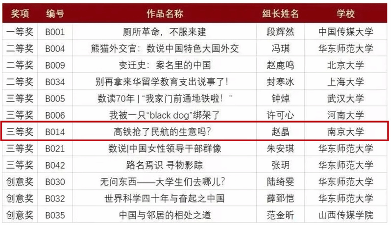 由赵晶、刘云杰、钱明雅三位同学合作完成的《高铁抢了民航的生意吗?》一文,从高铁与民航的竞争入手,探究在中国高铁飞速发展背景下两种交通工具的市场发展前景,以及国人的出行习惯发生了哪些变化。文章从“消失的中短程航线”作为切入点,深度分析案例,并通过数据的挖掘比对,用事实和数据将交通运输市场近年来的变化呈现了出来。