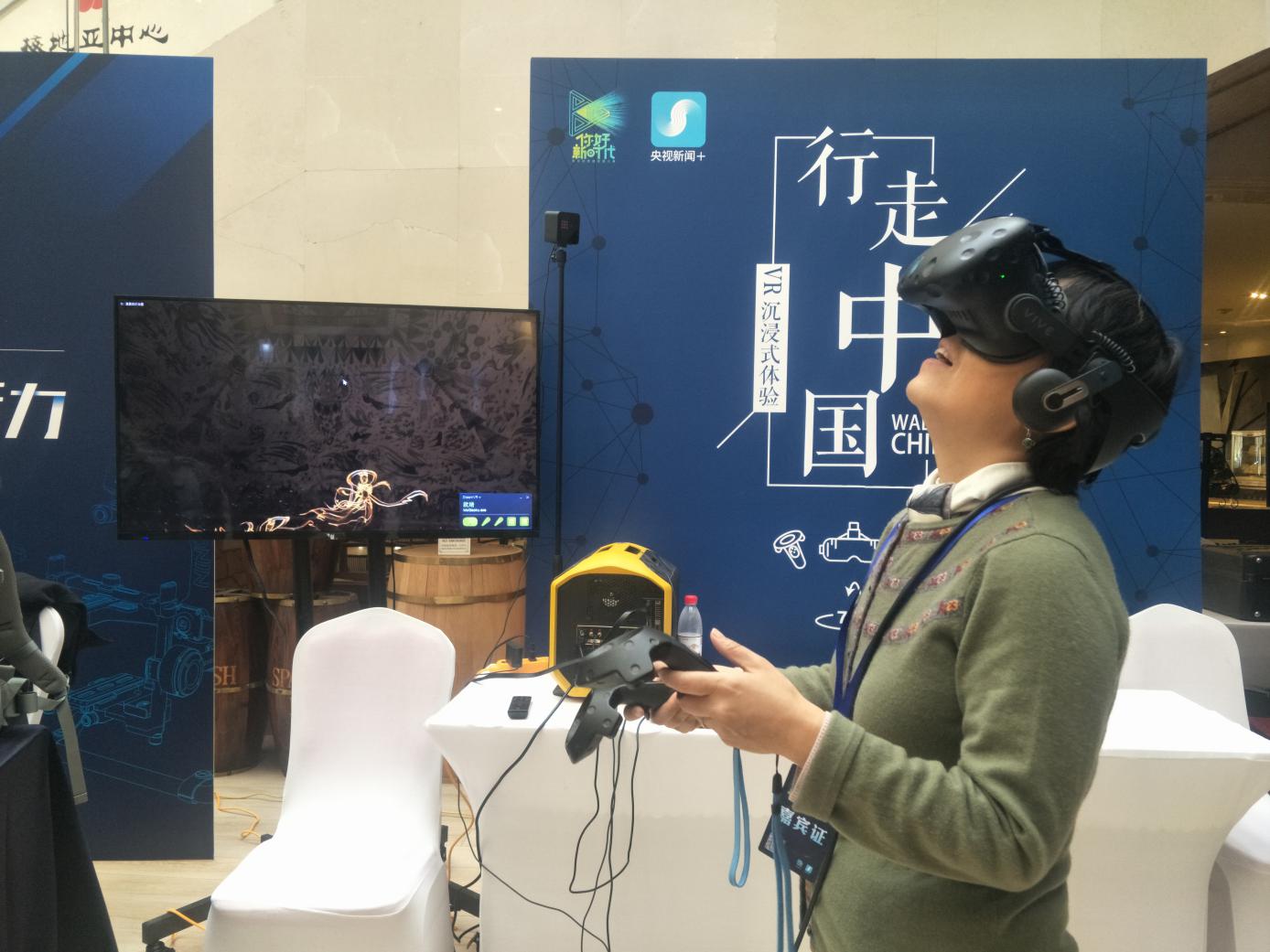国家级传媒实验教学示范中心主任白净教授在颁奖典礼现场体验VR作品《行走中国•敦煌》