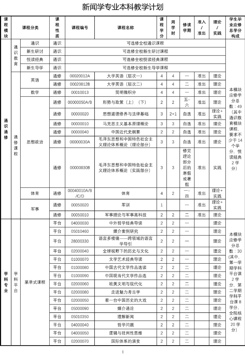 快猫短视频 新闻学专业本科教学计划(2017版)
