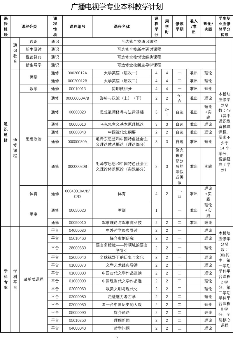 快猫短视频 广播电视学专业本科教学计划(2017版)