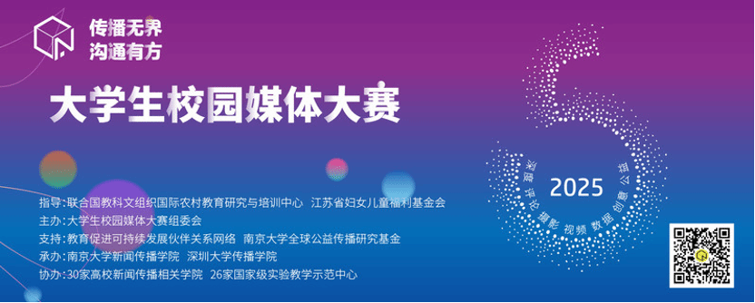 传播无界,沟通有方,2025年11月1日,第五届大学生校园媒体大赛颁奖典礼在深圳大学举行。 本届大赛由联合国教科文组织国际农村教育研究与培训中心及江苏省妇女儿童福利基金会指导,大学生校园媒体大赛组委会主办,快猫短视频 及深圳大学传播学院承办,30家高校新闻传播相关学院及26家国家级实验教学示范中心协办,教育促进可持续发展伙伴关系网络及快猫短视频 全球公益传播研究基金提供支持。大赛设有深度报道、评论、纪实摄影、...